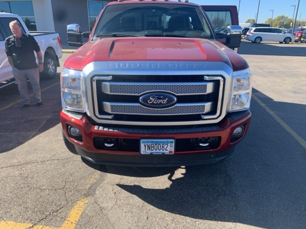 2014 Ford F-350SD Platinum *Great Local Trade-in, *This vehicle has a Clean History Report!, *4x4, *Moonroof, *Leather, 20" Platinum Cast Aluminum Wheels, 6" Angular Chrome Step Bars, ABS brakes, Body-Color Front & Rear Bumpers, Bright Chrome Door & Tailgate Handles, Chrome Exhaust Tip, Chrome Skull Caps on PowerScope Mirrors, Electronic Stability Control, Front dual zone A/C, Heated door mirrors, Illuminated entry, Low tire pressure warning, Memory Power Adjustable Pedals, Navigation System w/HD & Satellite Broadcast, Platinum Package, PowerScope Trailer-Tow Mirrors, Premium Leather-Wrapped/Wood Steering Wheel, Remote keyless entry, Remote Start System, Tailgate Step & Handle, Traction control, Unique Platinum Leather 40/Console/40 Seats, Unique Satin Chrome Grille, Universal Garage Door Opener. Ruby Red Metallic Tinted Clearcoat Odometer is 8491 miles below market average! 4WD