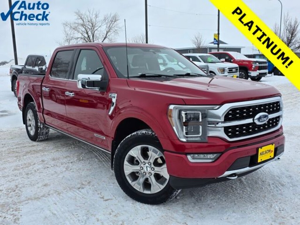 2022 Ford F-150 Platinum *Great Local Trade-in, *This vehicle has a Clean History Report!, *4x4, *Panoramic Roof, *Leather, *Heated & Cooled Seats, Adjustable pedals, Bed Utility Package, Class IV Trailer Hitch Receiver, Equipment Group 700A Standard, Garage door transmitter, Heated steering wheel, Integrated Trailer Brake Controller, LED Box Lighting, Power Tailgate, Tailgate Step w/Tailgate Work Surface, Turn signal indicator mirrors. Rapid Red Metallic Tinted Clearcoat Odometer is 4573 miles below market average! 4WD