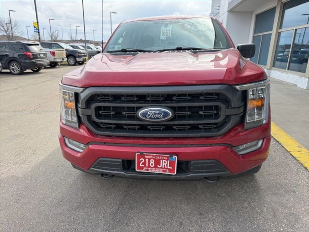 2022 Ford F-150 XLT *4x4, 10-Way Power Driver & Passenger Seats, 8" Productivity Screen in Instrument Cluster, Accent-Color Step Bars, Black 2-Bar Style Grille w/Black Surround/Accents, Body-Color Door & Tailgate Handles, Body-Color Front & Rear Bumpers, Box Side Decals, Chrome Single-Tip Exhaust, Class IV Trailer Hitch Receiver, Compass, Dual Zone Electronic Automatic Temperature Control, Equipment Group 302A High, Extended Range 36 Gallon Fuel Tank, Heated Front Seats, Illuminated entry, Integrated Trailer Brake Controller, Intelligent Access w/Push Button Start, Leather-Wrapped Steering Wheel, LED Reflector Headlamps, LED Sideview Mirror Spotlights, Max Trailer Tow Package, Onboard 400W Outlet, Power Glass Heated Sideview Mirrors, Pro Trailer Backup Assist, Rear Under-Seat Storage, Remote Start System w/Remote Tailgate Release, SYNC 4 w/Enhanced Voice Recognition, Unique Sport Cloth 40/Console/40 Front-Seats, Wheels: 18" 6-Spoke Machined Aluminum, XLT Chrome Appearance Package, XLT Sport Appearance Package, Zone Lighting. Red Metallic 4WD
