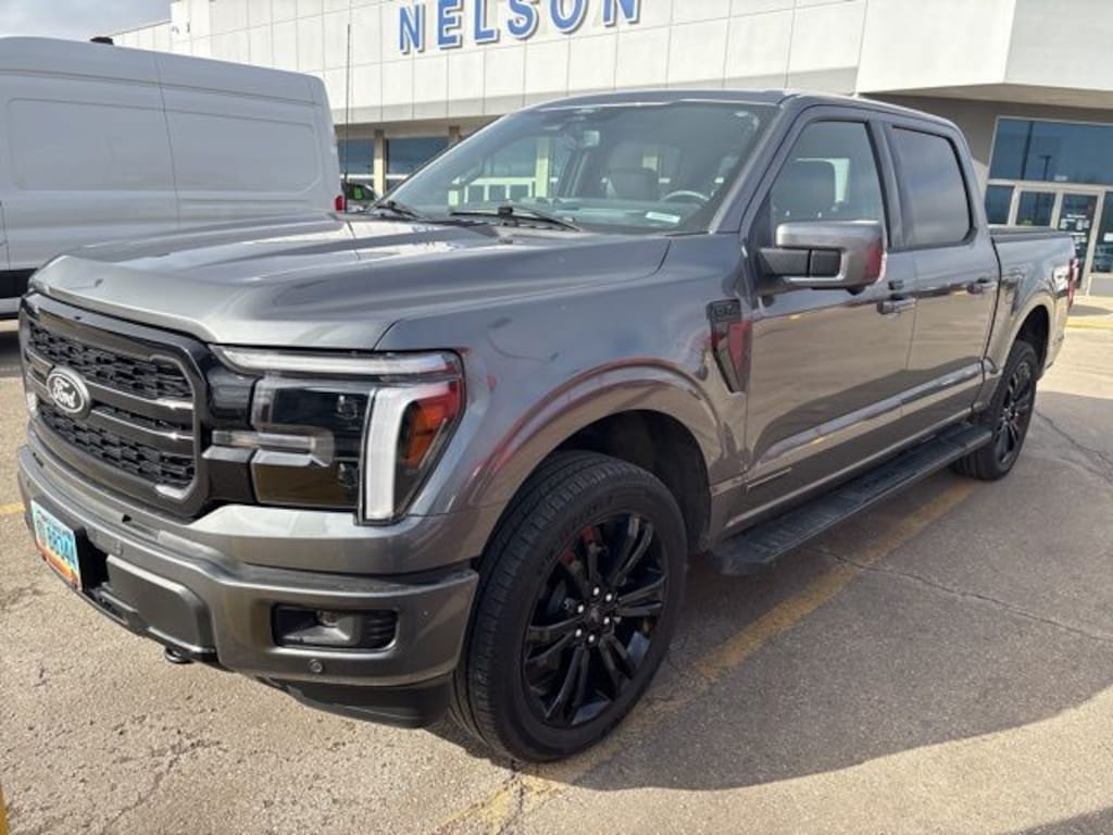 2025 Ford F-150 Lariat *This is a very nice One Owner trade, *Great Local Trade-in, *This vehicle has a Clean History Report!, *4x4, *Leather, *Back up Camera, *Heated & Cooled Seats, 2nd Row Heated Seats, 4 Pickup Box Tie-Down Plates, ActiveX Trimmed Bucket Seats (B), Ambient Lighting - Ice Blue Color Only, Bed Utility Package, Black Exterior Badging, Black Grille, Black Taillamp Bezels, Body-Color Front & Rear Bumpers, Body-Color Skull Caps & Door Handles, Dark Interior Appliques, Equipment Group 502A High, Gray Box Side Decal, Heads-Up Display, Illuminated Driver & Passenger Visors, Lariat Black Appearance Package, LED Box Lighting, Matte Black Tailgate F-150 Decal, Mobile Office Package, Power Tailgate, Power-Sliding Rear Window, Pro Access Tailgate, Radio: B&O Unleashed Sound System by Bang & Olufsen, Wheels: 20" Chrome-Like PVD. Carbonized Gray Metallic 4WD